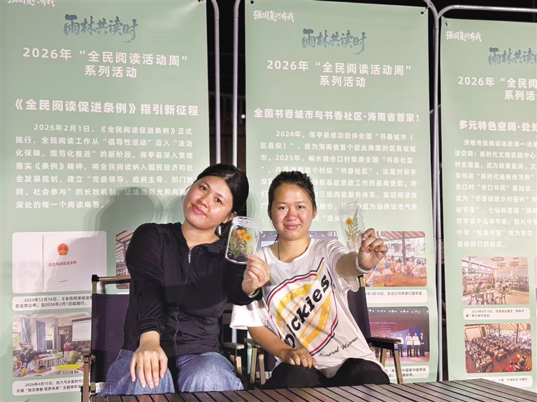 “雨林夜读”每周五准时上线,已播出123期,用声音点亮雨林夜晚;“美丽诵读”大赛为群众搭建展示平台;“凤凰引领周末阅读分享会”坚守九年,举办近200场,成为常态化文化品牌;构建县、乡、村三级阅读服务网络,2025年县图书馆线下服务读者超25万人次……近年来,保亭县委、县政府高度重视全民阅读工作。立足本土特色,持续培育阅读品牌、完善服务网络,以创建国家级“书香城市”为抓手,全民阅读工作成果丰硕。保亭先后获评全国“书香城市”,合口村获评全国“书香社区”,均为海南首个。此外,保亭还扎实开展“护苗·绿书签”行动,组建候鸟读书沙龙,结合版权保护试点完成作品登记610余件,实现阅读推广与文艺繁荣双向赋能。